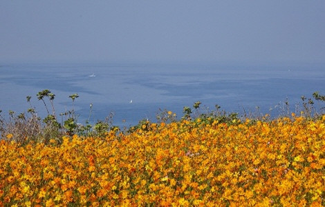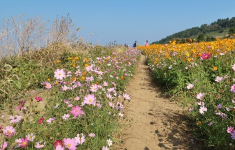 가을에는 주황색 코스모스로 장관을 이룬다.