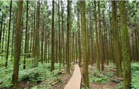 빽빽한 삼나무뿐만 아니라 졸참나무, 서어나무, 때죽나무, 편백나무 등 다양한 수종이 서식하고 있다.