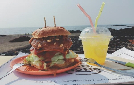 두툼한 흑돼지 패티위에 우도 땅콩이나 마늘칩이 뿌린 수제버거가 대표적인 메뉴로 성인남자가 배부를 정도인 1.5인분의 양이다.
