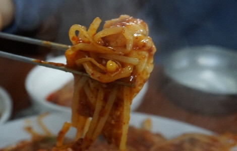 살짝 매콤하게 양념된 아귀와 아삭한 콩나물을 먹다 보면 어느새 한 그릇 뚝딱입니다.