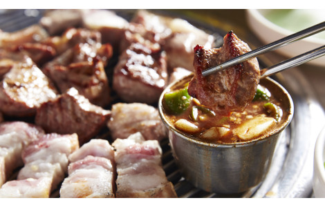 두툼한 고기를 구워 제주 전통 젓갈 멜젓에 찍어먹으면 제주의 맛을 느낄 수 있습니다.