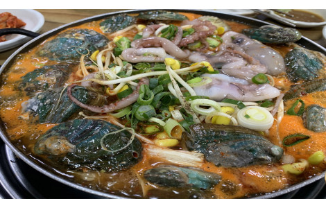 넉넉한 양의 해물탕이 인기인 한식당입니다. 소박한 분위기의 실내인데요. 제주방언을 벽면에 붙여 소개하는 것이 인상적이지요. 오분자기, 새우 등 싱싱한 해산물이 푸짐하게 올려진 해물탕과 매콤한 맛의 갈치조림이 인기메뉴입니다.