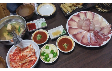 제주 그랜드호텔 인근에 자리 잡은 횟집입니다. 방어 철이면 마라도 인근 해역에서 잡아 올린 방어 요리를 선보이는 것으로 유명한 곳인데요, 방어가 제철이 아닐 때는 도미나 다금바리 등 다른 일반 생선회를 취급하지요.