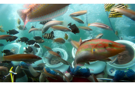 공기가 공급되는 헬멧을 착용하고 바다속에 들어가는 씨워킹과 공기통을 갖고 물속에 들어가는 스쿠버다이빙을 체험할수 있다. 예약제로 운영되어 사전예약이 필수다.