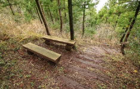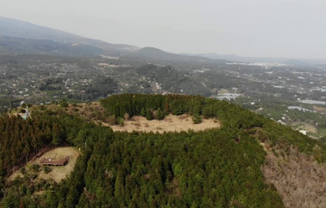 오름 중턱에는 삼나무, 편백나무, 상수리나무 등이 조림되어 있는데 나무들이 토해내는 상쾌한 공기를 마시며 오르다 보면 분화구에 도착한다.