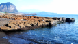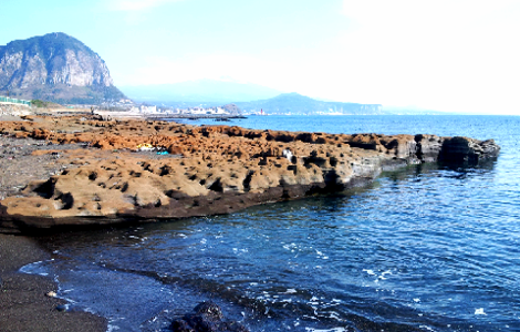 사계포구에서 바라본 산방산과 용머리해안