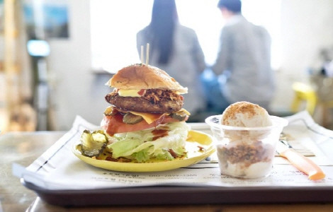 두툼한 흑돼지 패티위에 우도 땅콩이나 마늘칩이 뿌린 수제버거가 대표적인 메뉴로 성인남자가 배부를 정도인 1.5인분의 양이다.