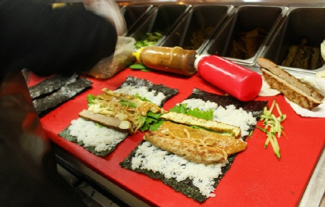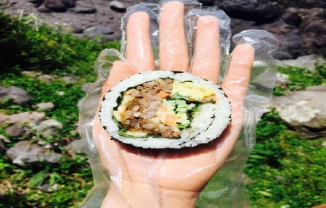 다가미 김밥, 스테이크롤, 삼겹김치쌈, 한우롤 같은 김밥과 함께 에그애플 샌드위치도 미리 포장되어 있다. 장조림버섯쌈은 가장 유명한 메뉴. 김밥은 일반 김밥의 두께보다 훨씬커서 포장시 비닐장갑을 함께 넣어준다. 김밥 한줄로도 든든한 한끼를 먹은 것 같은 기분이다.