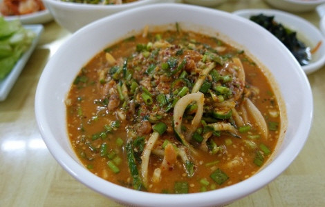 제주도 대표 생선인 옥돔을 물회로 먹을 수 있는 곳. 적당히 고소하고 매콤한 맛이 어우러진다. 옥돔물회는 비리지 않고 생선살이 굉장히 부드러워 강하게 씹는 것을 좋아하지 않는 사람들에게 좋은 메뉴다. 식초가 따로 준비되어 있는데, 기본적으로 신 맛이 가미되어 있지만 식초가 따로 준비되어 있어 신맛을 좋아한다면 원하는 대로 넣어서 먹을 수 있다. 반찬으로 갈치젓갈, 참외장아찌 등 독특한 음식들이 나온다. 갈치젓을 판매하기도 한다.