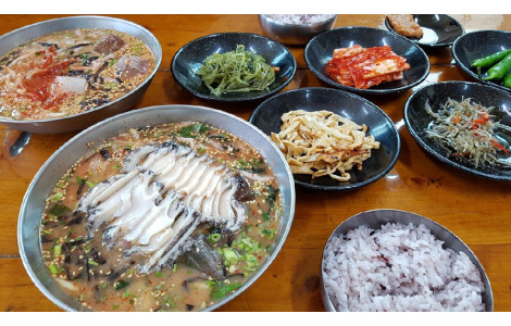 식당 앞 바다뷰가 예술입니다. 해녀분들께서 직접 잡으신 싱싱한 해산물로 요리합니다.