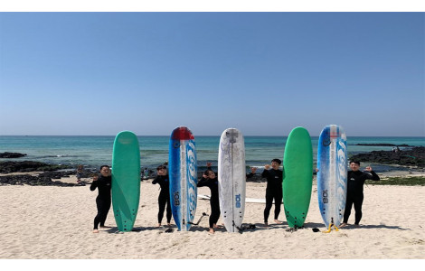 제주시 곽지해수욕장 인근에 위치한 서핑스쿨 곽지레저&서프나우.